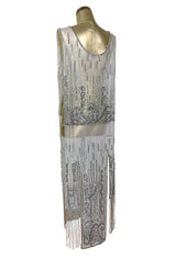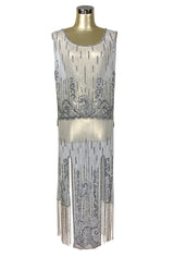 1920's Beaded Vintage Deco Tabard Fringe Panel Gown - The Epiphany - Phantom Silver