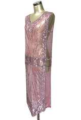 1920's Beaded Vintage Deco Tabard Panel Gown - The Modernist - Silver on Vintage Pink