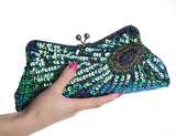 1930's Inspired Art Deco Beaded Evening Purse - Peacock Green