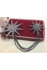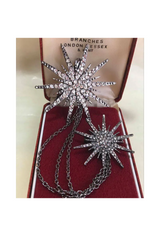 A classic antique design featuring two Victorian stars finely set with clear faceted crystals. Backed with gunmetal and a three chain attachment.