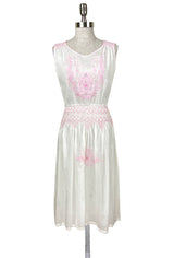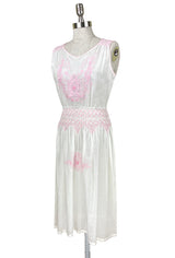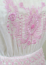 1920's Vintage Embroidered Silk Voile Provence Dress - Rouge Pink