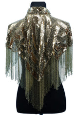 Vintage Luxe Hand Beaded Victorian Collar Fringe Capelet - Gold